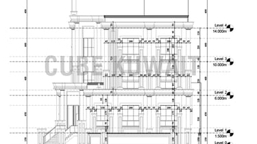 تم تصميم الواجهة الخارجية لهذا المشروع على الطراز النيو كلاسيك، في مدينة المطلاع، وتبلغ مساحة هذا المنزل 400 متر مربع، بارتفاع أربعة طوابق ونصف، وتقع على قطعة أرض زاوية، التصميم مذهل خلال النهار ولكنه أنيق وجذاب أثناء إضاءته في الليل. تضمن التفاصيل الدقيقة والمواد الفاخرة المستخدمة في الواجهات في ابراز المنزل كمعلم بارز يعكس التصميم الكلاسيكي والمعاصر.
