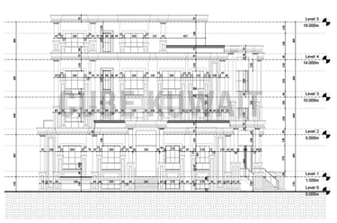 خلال النهار، تلقي القوالب والأعمدة ظلالاً، مما يضيف عمقًا وبعدًا إلى مظهر المبنى. تم استخدام مواد عالية الجودة مثل الرخام والمزاييك والحجر لإبراز الأناقة الخالدة للطراز النيو كلاسيك. يمزج التصميم بين العناصر المعمارية الكلاسيكية والوظائف الحديثة، مما يخلق هيكلًا متناغمًا وجذابًا بصريًا.